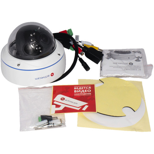 Модель AC-D3023VIR2 выполнена в форме классического купола. Основание и прозрачная крышка изготовлены из материалов с повышенным коэффициентом прочности, благодаря чему прибор справедливо занимает место в ряду вандалозащищенных устройств. Также видеокамера имеет высокий индекс защиты от попадания внутрь влаги и пыли IP66. Под стеклянным куполом скрывается вариофокальный объектив, фокусные расстояния 2.8-12мм. В число интерфейсов модели входят: стандартный сетевой разъем RJ-45, тревожные входы/выходы (2/1), аудио вход/выход и разъем для подключения 12-вольтового источника питания. RJ-45 поддерживает технологию питания по сети Ethernet (PoE), облегчающую процесс монтажа и сокращающую издержки на закупку/прокладку силовых кабелей к месту инсталляции устройства. В рамках построения комплексной системы безопасности через тревожные входы-выходы к ActiveCam AC-D3023VIR2 могут быть подсоединены дополнительные датчики охраны периметра и пожарные детекторы для мониторинга возникновения нештатных ситуаций. Также имеется встроенный архив (Edge Storage) – локальная запись видеоданных на карту памяти стандарта microSD объемом до 32Гбайт с возможностью удаленного просмотра, превращающая прибор в автономный видеорегистратор и удваивающая надежность сохранности отснятых видеоматериалов.