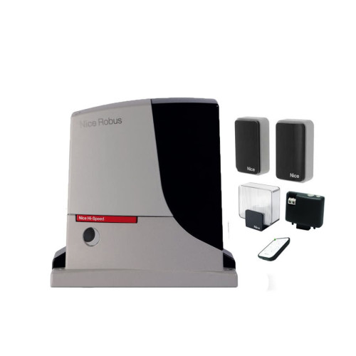 Комплект Nice RB500HSBDKIT2 для автоматизации откатных ворот со створкой весом до 500 кг, длиной до 8 м включает в себя два электромеханических привода RB500HS, фотоэлемент EPMB, лампу ELDC, два передатчика ON3EBD и приемник OXIBD.