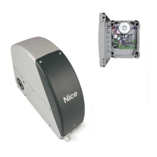 Комплект автоматики Nice SUMOKIT для промышленных секционных ворот площадью 15 ~ 35 м² или двухстворчатых раздвижных дверей состоит из электромеханического привода SU2000 и электронного блока управления DPRO924.