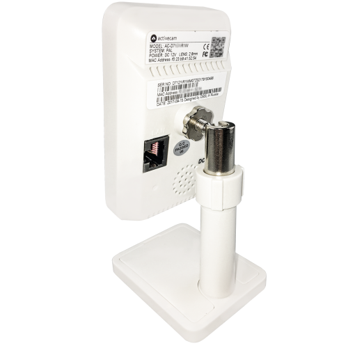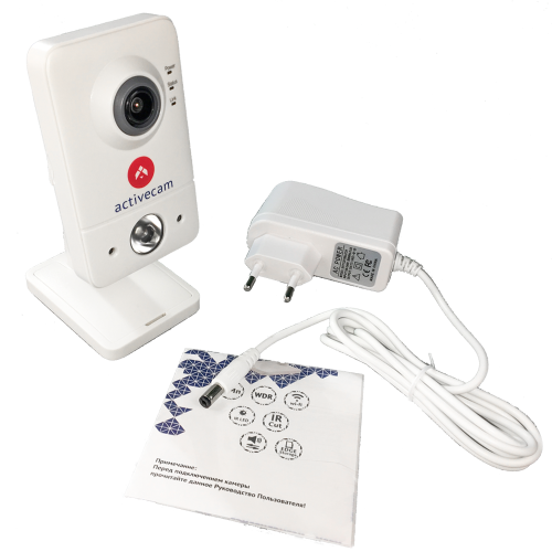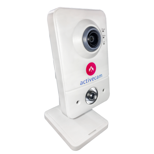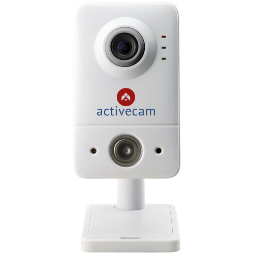 Модель ActiveCam AC-D7121IR1W выполнена в форм-факторе Cube и оборудована объективом с фокусным расстоянием 2.8 мм при F1.8 (углы обзора 121.3° / 67°). Входящий в комплект поставки поворотный кронштейн позволяет без труда осуществлять монтаж изделия на поверхностях с любым углом наклона. Набор интерфейсов представлен: сетевым разъемом RJ-45 и гнездом для подключения источника питания 5В (БП в комплекте, разъем USB). Наличие двустороннего аудиосопровождения (встроенные динамик и микрофон) позволяет регистрировать и отправлять звуковые сообщения к месту инсталляции прибора. Также камера располагает встроенным архивом (Edge Storage) – локальная запись данных на карту памяти стандарта microSD объемом до 128 ГБ, превращающая прибор в автономный видеорегистратор и удваивающая надежность сохранности отснятых видеоматериалов.