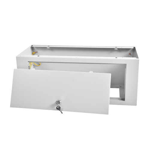 - Съемная дверца с точечным замком — для доступа к кабелям и простоты монтажа.