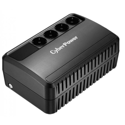 Линейно-интерактивный ИБП CyberPower BU850E номинальной мощностью 850 В·А, активной мощностью 425 Вт оборудован четырьмя розетками Schuko, встроенной свинцово-кислотной АКБ. Предусмотрена защита от скачков напряжения до 125 Дж.