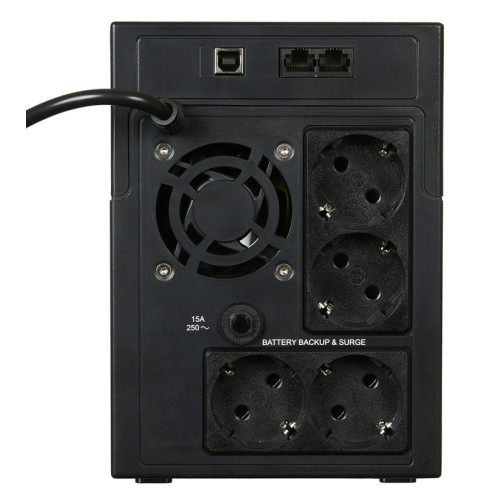 Линейно-интерактивный ИБП Ippon Back Basic 2200 Euro на четыре устройства (разъемы Schuko CEE 7) подает на выход модифицированную синусоиду, работает без переключения на батареи при сетевом напряжении в интервале 162 ~ 280 В. Номинальная мощность — 2200 ВА, активная — 1320 Вт.
