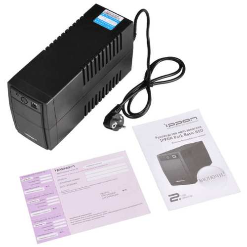 Линейно-интерактивный ИБП Ippon Back Basic 850 рассчитан на подключение до трех устройств через разъемы IEC 320 с поддержкой батарейного питания. Форма выходного сигнала — ступенчатая аппроксимированная синусоида. Номинальная мощность — 850 ВА, активная — 480 Вт.