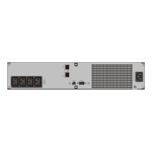 Из интерфейсов на борту: RS-232 и USB — для связи с ПК, RJ-45/RJ-11 — для защиты модемной и компьютерной сети. Предусмотрено принудительное (вентиляторное) охлаждение. Рабочие температуры — 0 ºС… +40 ºС. Доступен горизонтальный монтаж в 19'' стойку (два посадочных места — 2U) или вертикальная напольная установка в подставки. Размер — 438×86.5×436 мм, вес — 13.2 кг.
