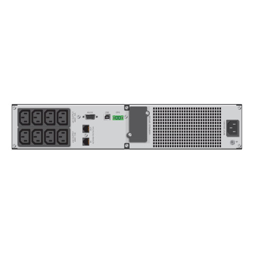 Из интерфейсов на борту: USB, RS-232/сухие контакты, RJ-45/RJ-11. Предусмотрены два типа установки: вертикальная — в подставки, горизонтальная — в 19'' стойку (два посадочных места — 2U). Рабочие температуры — 0 ºС… +40 ºС. Габариты — 438×86.5×436 мм, вес — 21 кг.