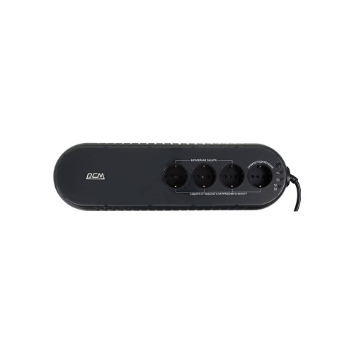 Резервный (Offline) ИБП Powercom WOW-1000U рассчитан на четыре потребителя с подключением через три евророзетки с батарейной поддержкой и одну с фильтрацией. Форма напряжения на выходе — ступенчатая аппроксимация синусоиды. Номинальная мощность — 1000 ВА. Мощность нагрузки не должна превышать 500 Вт.