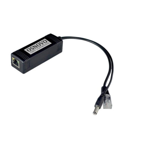 РоЕ-сплиттер Osnovo PoE Splitter/3 оснащен на входе портом RJ-45 с РоЕ, на выходе — RJ-45 без РоЕ, штекером вывода питания DC 5.5×2.1 мм, LED-индикатором поступления РоЕ.