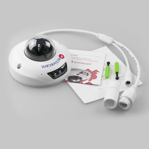 Модель ActiveCam AC-D4111IR1 выполнена в форме миниатюрного купола (Ø всего 100 мм) и комплектуется объективом с фиксированным фокусным расстоянием 3.6 мм и 3-осевым конструктивом крепления. Набор интерфейсов представлен сетевым разъемом RJ-45 (поддерживается технология питания PoE) и разъемом для подключения БП 12В. Встроенный микрофон позволяет регистрировать звуковые сообщения с места инсталляции прибора. Наличие слота для установки карт памяти стандарта microSD объемом до 128 ГБ обеспечивает возможность осуществления локальной записи, что, во-первых, превращает прибор в автономный видеорегистратор, а во-вторых, вдвое увеличивает надежность сохранности отснятых с ее помощью видеоматериалов. Максимальная потребляемая мощность модели составляет 3 Вт.