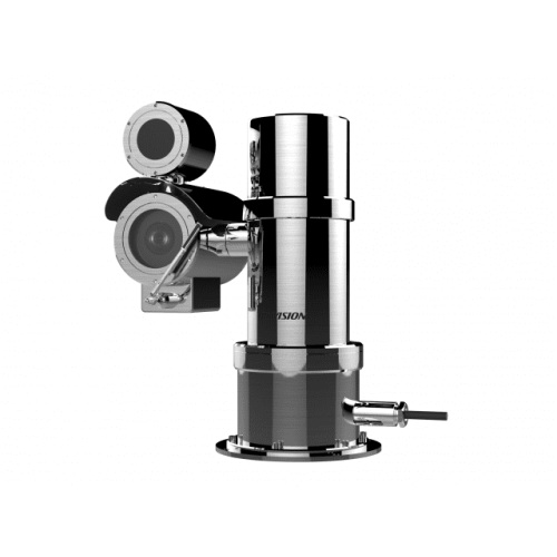 2 Мп (1920×1080) IP-камера Hikvision DS-2DY9236I-CWX (W/316L) установлена на поворотную платформу, оснащена адаптивным ИК-прожектором дальностью действия 150 м. Относится к взрывозащищенной серии: способна стабильно работать в атмосфере, содержащей пыль, легковоспламеняющиеся и взрывоопасные газы, в зонах классов 1 или 2 по ГОСТ IEC 60079-10-1-2011, 21 и 22 по 60079-10-2-2011, ГОСТ IEC 60079-14-2011 etc. Соответствует защите от воспламенения пыли уровня t (ГОСТ IEC 60079-31-201), взрывонепроницаемости оболочки уровня d (ГОСТ IEC 60079-1-2011). Стабильно работает на улице вне зависимости от времени года: защита корпуса из нержавеющей стали марки AISI 316L — по IP68, рабочие температуры — –40 ºС… +60 ºС, предусмотрены грозозащита, дворники, смотровое окно из закаленного ударопрочного стекла. Оснащена 36-кратной оптикой с масштабированием за 4.4 с. Трансляция основного потока — на скорости до 50 fps. Скорость поворота платформы по предустановке — 50 °/с, наклона — 40 °/с. Предусмотрено 300 предустановок, восемь патрулей, четыре шаблона.