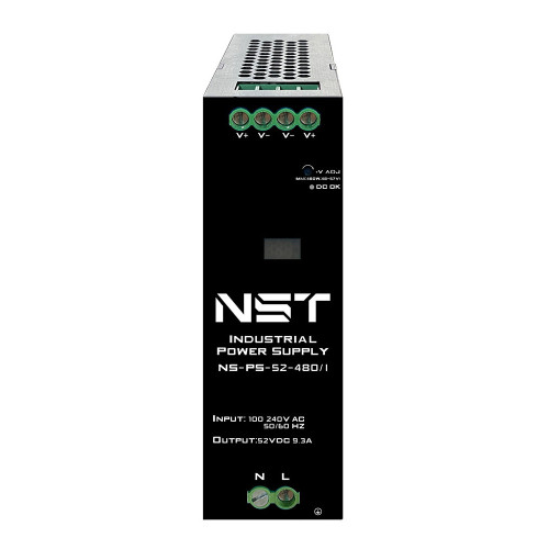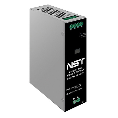 Промышленный блок питания NST NS-PS-52-480/I мощностью 480 Вт стабильно работает в диапазоне температур –40 °С… +80 °С. Укомплектован дисплеем для отображения параметров тока.