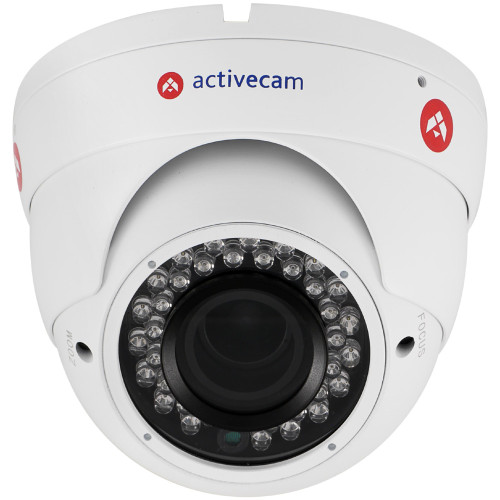Аналоговая камера ActiveCam AC-A453IR3 выполнена в форм-факторе купола, в качестве материала для ее изготовления использован проченный металлический сплав, благодаря чему прибор законно занимает место в ряду вандалозащищенных устройств. Уровень пыле- и влагозащиты модели IP65. В подвижную нижнюю часть камеры вмонтирован вариофокальный объектив с автоматической регулировкой диафрагмы (АРД) для электронного управления световым потоком и фокусным расстоянием 2.8-12 мм. ActiveCam AC-A453IR3 оборудована двумя интерфейсами: BNC-разъемом аналогового видеовыхода и разъемом для подключения 12-вольтового источника питания. Разъем BNC позволяет подключать камеру к аналоговому монитору и DVR-видеорегистратору.