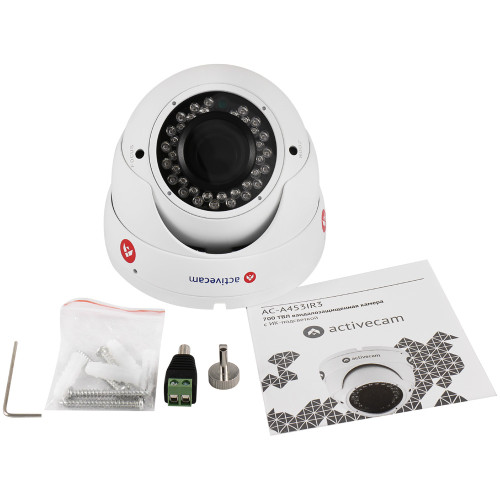 Аналоговая камера ActiveCam AC-A453IR3 является профессиональным устройством видеонаблюдения, заключенным в металлический вандалозащищенный корпус с индексом защиты от попадания внутрь влаги и пыли IP65. Высокая чувствительность, набор функций ATR-BLC-HLC вкупе с максимальным разрешением на рынке аналоговых камер 700 ТВЛ позволяют получать прекрасное качество изображения даже в условиях сложного освещения. Наличие встроенной ИК-подсветки с дальностью действия до 30 метров дают возможность «видеть» даже в отсутствии дополнительного освещения. Благодаря шарнирообразной конструкции поворотной части, куда встроен вариофокальный АРД-объектив, ActiveCam AC-A453IR3 одинаково легко может быть закреплена как на стене, так и на потолке. Для настройки параметров устройства при монтаже имеется OSD-меню. Благодаря разбросу рабочих температур в интервале от -30 до 60°C модель ActiveCam AC-A453IR3 может быть применена не только для типичного внутреннего использования, но и установлена в условиях неотапливаемого помещения, например, на складе. Камера прекрасно подойдет для инсталляции в местах, где требуется высокая детализация изображения, имеется неравномерное освещение или риск его отключения.
