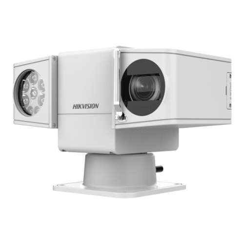 2 Мп (1920×1080) IP-камера Hikvision DS-2DY5225IX-DM (T5) установлена на поворотную платформу. Оснащена 25-кратным объективом с со скоростью приближения 4.8 с., адаптивной ИК-подсветкой дальностью действия до 250 м. Рассчитана на круглогодичную уличную эксплуатацию: корпус из алюминиевого сплава соответствует стандарту защиты от пыли и влаги IP66, рабочие температуры — –40 ºС… +70 ºС, грозозащита — 6 кВ, предусмотрены обогреватель и дворник.