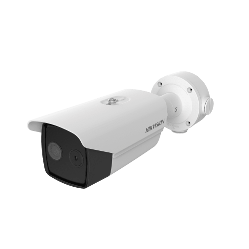IP-камера Hikvision DS-2TD2636B-15/P объединяет в себе оптическую камеру видеонаблюдения и тепловизор для измерения температуры людей в режиме реального времени с точностью ±0.5 ºС. Камера захватывает лицо и тепловизор измеряет температуру лба. Рассчитана на работу в помещениях с несильным движением воздуха.