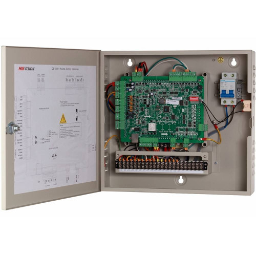 Сетевой контроллер СКУД Hikvision DS-K2601 предназначен для организации точки прохода на одну дверь. Плата заключена в металлический корпус, базируется на 32-битном высокоскоростном процессоре. Устройство укомплектовано встроенными часами. Поддерживает 4 считывателя: 2 — Wiegand (W26/W34), 2 — RS-485. Интерфейсы сети: TCP/IP, RS-485. Объем памяти: 16 МБ — 100 000 карт, 300 000 событий, есть возможность расширения до 200 000 карт и 600 000 событий, максимум цифр в номере карты — 20. Тревожный вход/выход (9/2): входы — Alarm Input×4, Door Magnetic×1, Door Switch×1, Case Input×2, Tamper-proof×1; выходы — Switch Relay×1, Alarm Relay×1. Поддерживает загрузку событий тревоги. LED-индикация: питание, статус соединения, тревога, встроенные часы. Питание DC 12 В/1А, потребление — до 4 Вт без нагрузки, до 50 Вт с нагрузкой, габариты — 370×345×90 мм. Рабочие условия: температуры -20 °C… +65 °C , влажность 10–90 %. Сертификация — CE, FCC. Гарантия — 3 года.