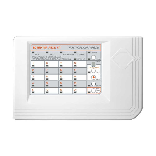 Контрольный прибор «Сибирский Арсенал» «ВС-Вектор-АП220» рассчитан на 140 адресных устройств. Оборудован двумя выходами для подключения адресных линий, четырьмя реле, портами RS-485, microUSB. Совместим с системой передачи извещений «Ветта-2020», устройством регистрации событий «ВС-УРС Вектор». Поддерживает все алгоритмы работы (А, В и С) согласно свода правил СП 484.1311500.2020 «Системы противопожарной защиты. Системы пожарной сигнализации и автоматизация систем противопожарной защиты. Нормы и правила проектирования» (01.03.2021 г).