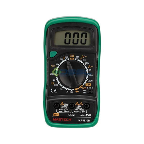Портативный цифровой мультиметр Mastech MAS830B для измерения силы DC, напряжения DC и AC, сопротивления, тестирования падения напряжения диодов, проверки транзисторов PNP и NPN базируется на АЦП двойного интегрирования.