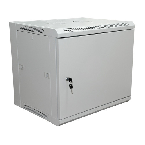 Односекционный настенный шкаф Rexant 04-2232 предназначен для размещения 19-дюймового телекоммуникационного, серверного и слаботочного оборудования высотой 12U. Каркас изготовлен из листовой стали толщиной 1,5 мм и покрыт стойкой порошковой краской RAL7035, благодаря чему выдерживает нагрузку до 90 кг и надёжно защищает аппаратуру. Металлическая передняя дверь толщиной 1,25 мм оборудована замком, навешивается на правую или левую сторону и открывается на 220°, упрощая обслуживание. Съёмные боковые панели на защёлках обеспечивают свободный доступ, а пара вертикальных направляющих 19″ с разметкой в юнитах гарантирует точное позиционирование устройств; два опорных уголка входят в комплект для поддержки тяжёлых блоков. В верхней крышке предусмотрены панели под вентиляторный модуль, а в верхней и нижней частях корпуса — по два кабельных ввода. Внутренние размеры 570 × 600 × 635 мм (Ш × Г × В) дают достаточный запас пространства, степень защиты IP20, предусмотрено заземление. Шкаф поставляется в разобранном виде в одном гофрокоробе, что снижает транспортные расходы и облегчает доставку на объект.