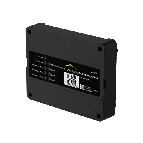 Модуль дымоудаления Rubetek МДА-101-2 для управления заслонками рассчитан на два огнезадерживающих клапана. Соединяется с контроллером пожарной системы по адресной линии связи.