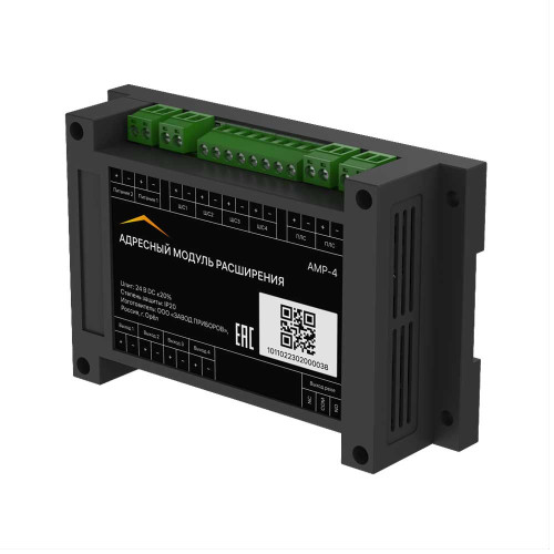 Модуль расширения Rubetek АМР-4 для подключения неадресных пожарных, охранных, тепловых и дымовых извещателей к адресной системе рассчитан на четыре шлейфа сигнализации (тридцать два устройства в каждом), оборудован четырьмя свободно программируемыми выходами, выходом типа сухой контакт. Управляет оповещателями и инженерными системами, передает информацию на ППК.