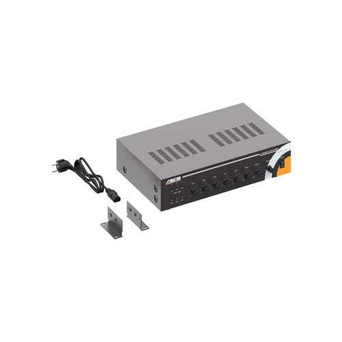 Усилитель мощности AB-класса Roxton AZ-240 для распределенной (оповещение и фоновое озвучивание) системы оповещения рассчитан на шесть зон — оборудован селектором, коммутирующим высоковольтные выходы с линиями громкоговорителей.