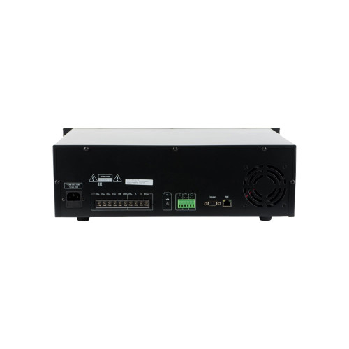 Трансляционный усилитель мощности AB-класса Roxton IP-A67240 для распределенной системы звукового оповещения на базе IP-сети укомплектован блоком выходных реле для активации реле принудительного отключения аттенюации на регуляторах громкости и передачи сигналов сработки.