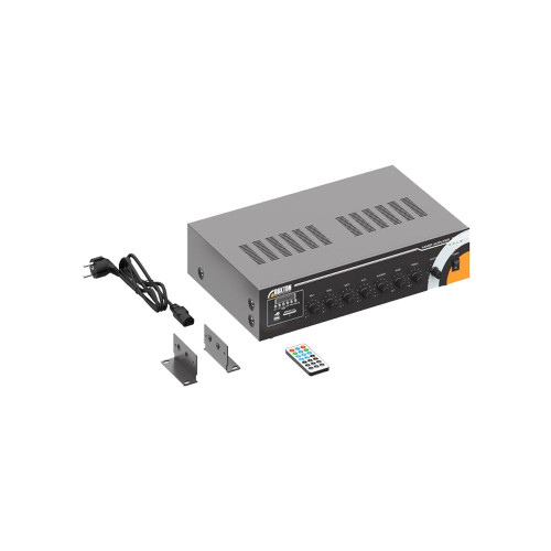 Трансляционный усилитель мощности AB-класса Roxton MA-120 оборудован FM-тюнером с поддержкой Bluetooth и внешних носителей, подключенных через разъем SD или USB.