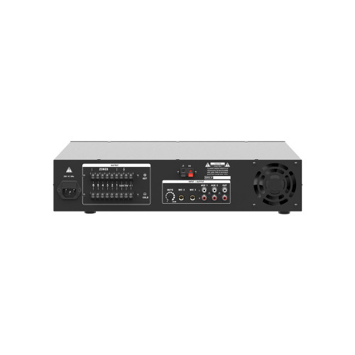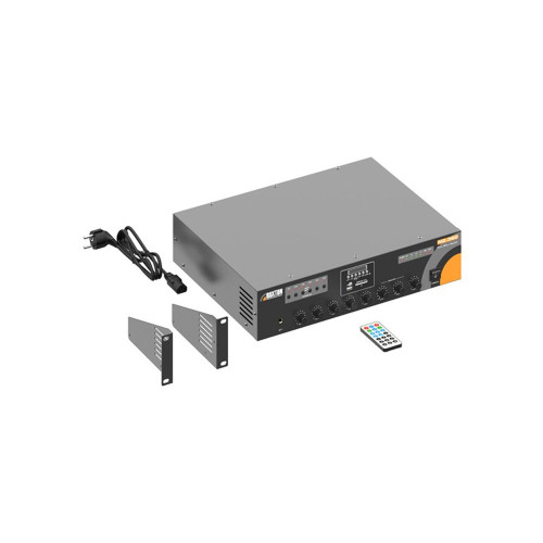 Трансляционный усилитель мощности AB-класса Roxton MZ-360 укомплектован селектором зон и MP3-проигрывателем с портами SD, USB (для подключения накопителей), FM-тюнером, пультом ДУ, поддержкой Bluetooth.