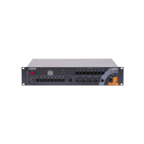 Моноблок Roxton RA-8236 для построения 12-приоритетной системы оповещения, управления эвакуацией (СОУЭ) 3-го типа, музыкальной трансляции состоит из блока автоматического контроля (импеданс 10 Ом ~ 1600 Ом) восьми линий громкоговорителей, 8-зонного трансляционного усилителя мощности.