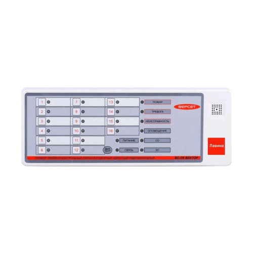 Радиоканальный контрольный прибор «Сибирский Арсенал» «ВС-ПК Вектор Лавина» рассчитан на 32 извещателя, 16 оповещателей. Оборудован тремя реле. Совместим с пультами центрального наблюдения «Лавина», «Горизонт», устройством регистрации событий «ВС-УРС Вектор».