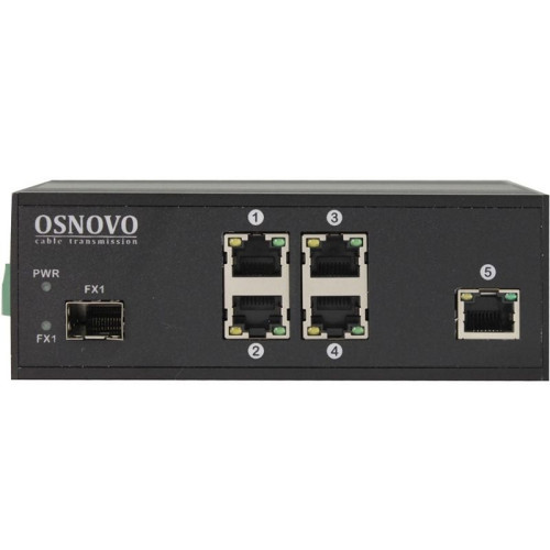 Промышленный неуправляемый PoE коммутатор OSNOVO SW-40501/IC укомплектован четырьмя FE RJ-45 с поддержкой PoE, одним FE Uplink-портом и FE слотом SFP для подключения к оптическим линиям связи (SFP-модуль в комплект не включен).