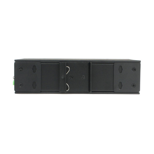 Предусмотрена клеммная колодка для подключения реле типа «сухой контакт» (тревожный выход), основного и резервного БП DC 45 ~ 57 В (в комплект не входят), винтовая клемма для подключения к контуру заземления, DIP-переключатель настройки тревожного сигнала для портов, LED-индикаторы подключения основного и резервного блока питания, неисправности, работы РоЕ-портов. Потребляемая мощность без РоЕ — 15 Вт. Рабочие температуры — –40 °C... +70 °C. Грозозащита — 6 кВ. Защита от пыли и влаги — IP30. Естественное охлаждение. Монтаж — вертикально на DIN-рейку. Размер — 75×175×125 мм.