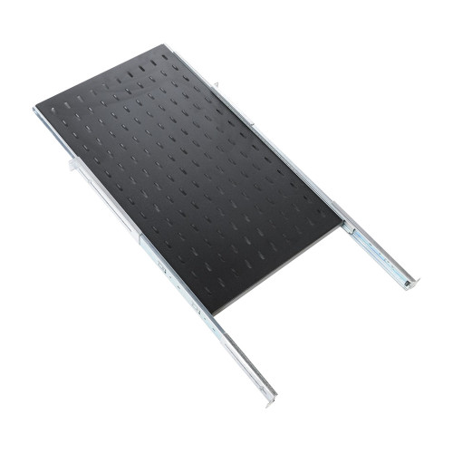 Выдвижная полка ЦМО ТСВ-62-9005 для телекоммуникационного шкафа типоразмера 19" изготовлена из стали толщиной 1.2 мм с полимерным порошковым покрытием черного (RAL 9005) цвета. Соответствует ГОСТ 28601.2 (19-дюймовые конструктивы по МЭК 297). Поставляется с двумя телескопическими направляющими и комплектом крепежа.