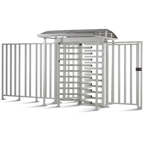 Соединение двух секций возможно под углом 180º или 90º. Для стыковки секций, крепления к калитке, турникету и стене предусмотрены специальные накладки и кронштейны (в комплект не входят).