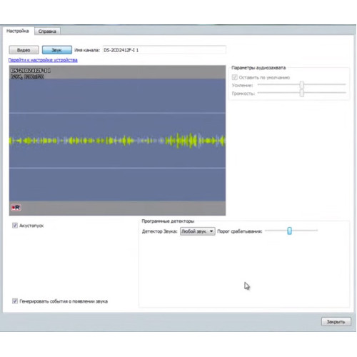 Для генерирования событий в базу данных необходимо установить соответствующий «флажок» в TRASSIR. Акустопуск отвечает за начало записи в архив при обнаружении звука, превышающего установленный порог.