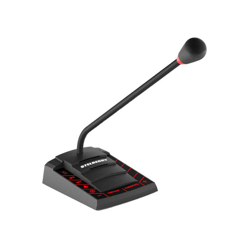 Пульт управления оповещением Stelberry F-741 рассчитан на двадцать громкоговорителей F-306 мощностью по 6 Вт или восемь рупорных громкоговорителей F-415 мощностью по 15 Вт. Поддерживает музыкальную трансляцию и речевые сообщения — укомплектован аудиовходом TRS mini jack 3.5 мм, аудиовыходом (для записи оповещений, передачи звука на регистратор или камеру) и однонаправленным (кардиоидным) микрофоном, защищенным акустическим спонжем. Управляет четырьмя зонами оповещения (коммутатор на четыре RJ-45 в комплекте).