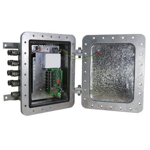 Предназначенный для круглогодичной уличной эксплуатации во взрывоопасных зонах классов 1, 2, 21, 22 неуправляемый РоЕ-коммутатор «Релион» SW-EXD-A-2G-8Poe+/480W укомплектован микроконтроллером, восемью РоЕ-портами RJ-45 (до 100 Мбит/с) с автосогласованием, двумя гигабитными SFP-слотами (модули в комплект не входят). Подает на порт до 60 Вт при общем бюджете PoE 480 Вт. Корпус изготовлен из алюминиевого сплава, защищен от влаги и пыли по стандарту IP66/68, от взрыва — 1Ex d IIC Т5/Т6 Gb (кроме ацетилена), Ex tb IIIC T 85 °C… T 100 °C Db. По периметру крышки проложен уплотнитель, на внутренних поверхностях — фольгированный утеплитель. Рабочие температуры — –65 ºC... +55 ºC.