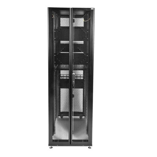Серверный шкаф ЦМО ШТК-СП-48.6.12-44АА-9005 высотой 48 U, шириной 600 мм, глубиной 1130 мм, полезной глубиной (между закрытыми дверьми) 890 мм выполнен в типоразмере 19" по по ГОСТ 28601-90 (МЭК 297). Представляет собой сборно-разборную конструкцию из каркаса, крыши, четырех боковых панелей, перфорированными двустворчатой задней и передней дверьми. Съемные боковые панели и две двери обеспечивают четырехсторонний доступ к оборудованию. Сварные рамы каркаса соединены швеллерами — элементы крепления обеспечивают высокую жесткость конструкции.