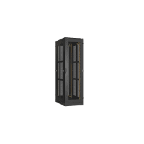 Напольный сборно-разборный серверный шкаф TLK TFA-426010-PPPP-BK типоразмера 19" (серия 482.6 мм по ГОСТ 28601.2-90) состоит из двух цельносварных рам с смонтированными на них перфорированными дверями, крыши, основания, двух боковых перфорированных стенок, двух пар направляющих с юнитовой маркировкой. Двери взаимозаменяемые, одностворчатые, универсальной навески, с открыванием на 180º, ручками с четырехточечными замками. Доступ к оборудованию обеспечен с четырех сторон: через двери и легкосъемные боковые стенки.
