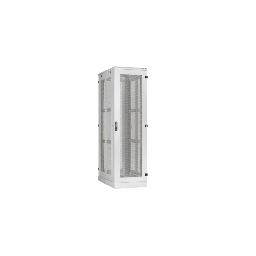 Серверный напольный шкаф TLK TFA-426010-PPPP-GY стандарта 19" (серия 482.6 мм по ГОСТ 28601.2-90) с 4-сторонним доступом к оборудованию состоит из основания, двух цельносварных рам с перфорированными дверями, крыши, двух боковых перфорированных стенок, четырех направляющих. Характеристики дверей: одностворчатые, перенавешиваемые, с углом открывания 180º, 4-точечными замками.