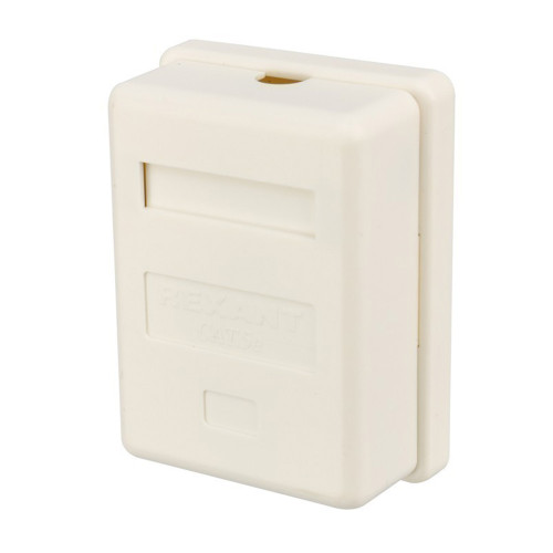 Компьютерная розетка Rexant 03-0121 оборудована гнездом для коммутационного модуля. Изготовлена из пластика