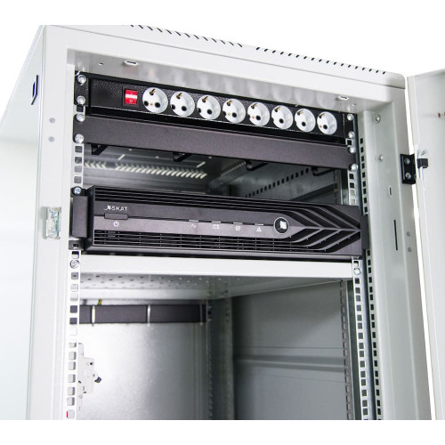 Комплект «Бастион» Skat-UPS 10 000 SNMP состоит из источника бесперебойного питания «Бастион» Skat-UPS 10000 RACK с встроенным SNMP-модулем CX 504 и 19″-го телекоммуникационного шкафа.