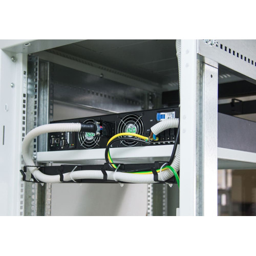 Предусмотрены блок розеток с 2-позиционным переключателем, шина заземления, вводный автоматический защитный выключатель, место для размещения аккумуляторной батареи из 16 фронт-терминальных АКБ (в комплект не входит), перфорация по периметру для естественного воздухообмена. Защита от пыли и влаги — IP20. Рабочие температуры — 0 ºС… +40 ºС. Размер — 600×820×2130 мм. Вес — 140 кг.