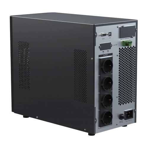 ИБП двойного преобразования Ippon Innova TAE 3000 номинальной мощностью 3000 В·А, активной мощностью 3000 Вт укомплектован четырьмя розетками Schuko для подключения нагрузки, портами RS-232 и USB, ЖК-дисплеем для отображения уровня нагрузки, заряда батареи, напряжения. Работает в основном, резервном и байпас (питание нагрузки в обход основной цепи ИБП) режимах.