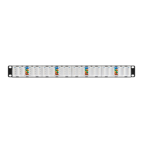 • 24 порта RJ45/8P8C. Категория — 6a. Диаметр проводников — 24 ~ 22 AWG. Полоса пропускания — 100 МГц. Материал контактов — фосфористая бронза, покрытия контактов — золото толщиной 50 мкд поверх никеля толщиной 100 мкд.
