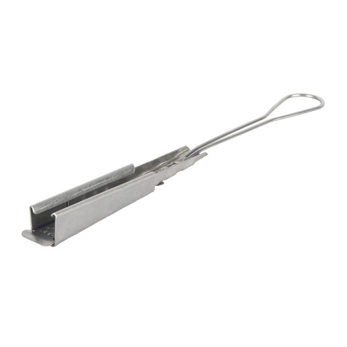Анкерный зажим Nikomax NMF-AL-TCO-2-1 для крепления и удержания в натянутом состоянии плоского оптического кабеля на опорах воздушных линий электропередачи, связи, городского электрохозяйства (уличного освещения, наземного электротранспорта), элементов зданий и сооружений изготовлен из оцинкованной стали.