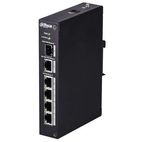 Неуправляемый Fast Ethernet коммутатор Dahua DH-PFS3106-4T укомплектован самонастраивающимися портами, передающими сигнал по витой паре: 4×10/100M порта RJ-45, одним 10/100/1000M портом RJ-45 и одним с SPF-портом. Все порты адаптируются к режиму MDI/MDIX автоматически. Модель готова к эксплуатации на улице круглый год: диапазон рабочих температур — -40 ºС…+70 ºС, предусмотрена грозозащита.