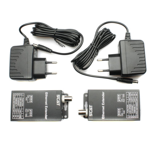 Удлинитель SC&T IP09CK состоит из передатчика и приемника IP09C. Увеличивает дальность передачи Ethernet по коаксиальному кабелю до 1000 м на скорости 10 Мбит/с, до 500 м — 100 Мбит/с. Поддерживает полнодуплексный и полудуплексный режим. Рекомендуемые типы кабеля: коаксиальный RG-6U (75-5) и витая пара категории 5e (до 300 м).