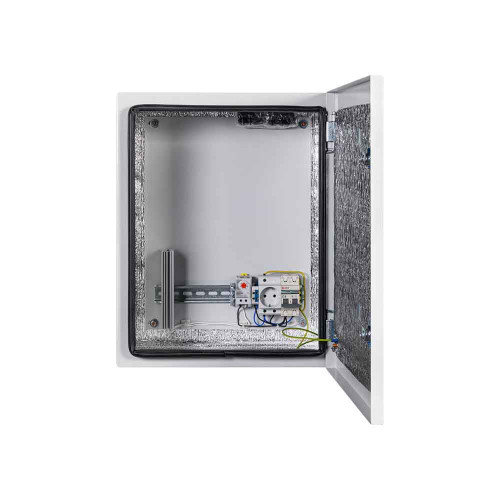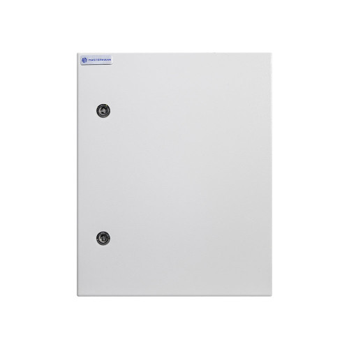 Универсальный монтажный шкаф Mastermann 13УТ+ (Ver. 2.0) уличного исполнения (защита от пыли и влаги по стандарту IP66, рабочая температура — –55 °C… +50 °C) укомплектован обогревателем мощностью 100 Вт, автоматическим выключателем на 6 А, монтажной платой, двумя замками, двумя гермовводами.